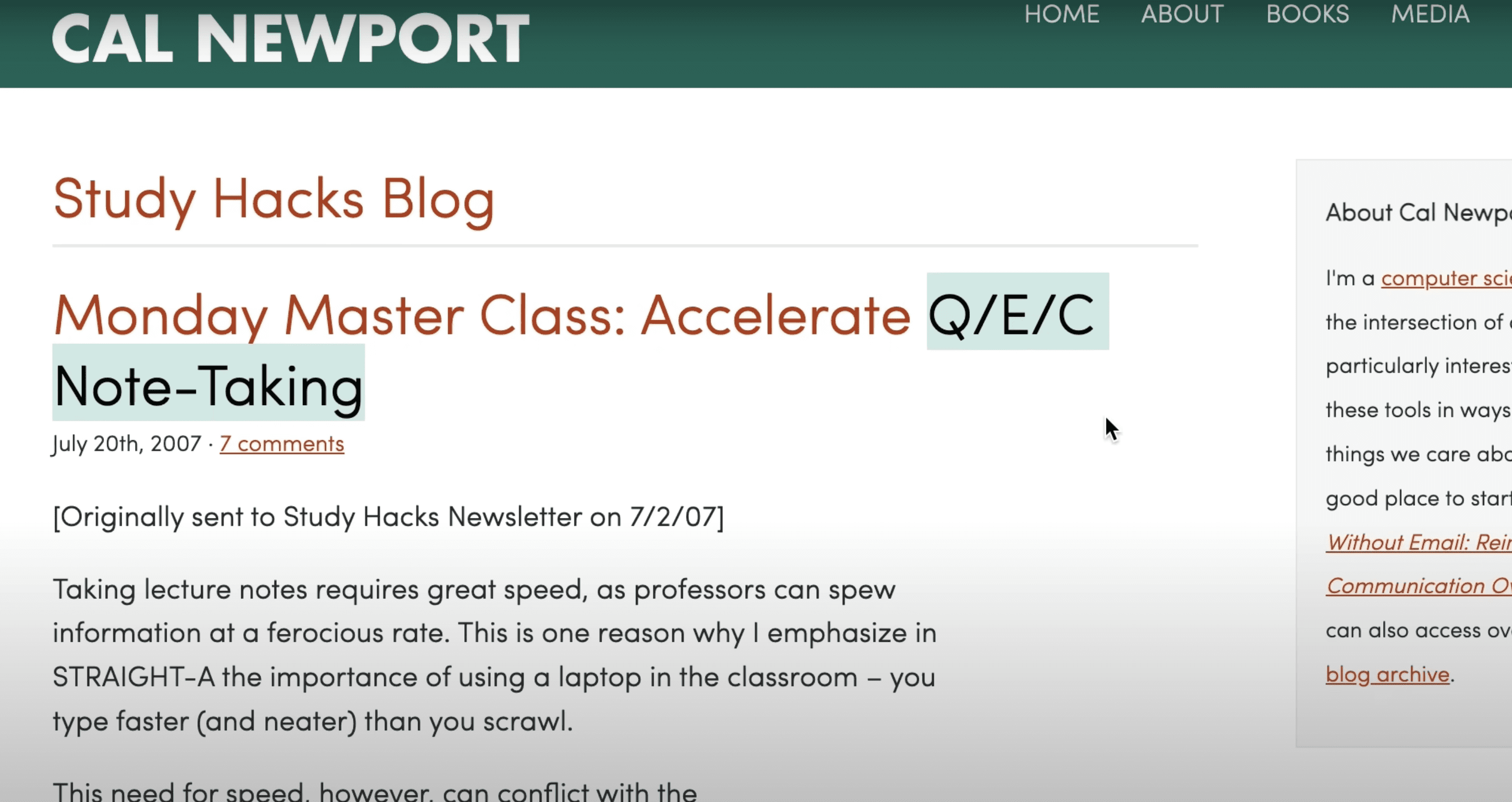 The QEC method, popularized by Cal Newport from Georgetown University, is an effective way to structure your notes. Newport, known for his work on deep work and productivity, emphasizes the utility of this method not only in academic settings like law school but also in various fields requiring critical analysis.